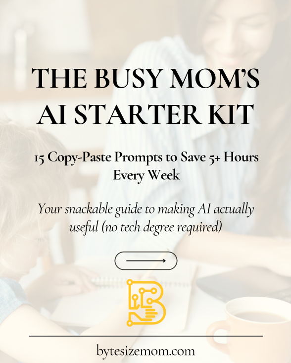 The Busy Mom’s AI Starter Kit includes simple, ready-to-use prompts for meal planning, emails and daily tasks. It’s your friendly intro to AI. Practical, not techy.